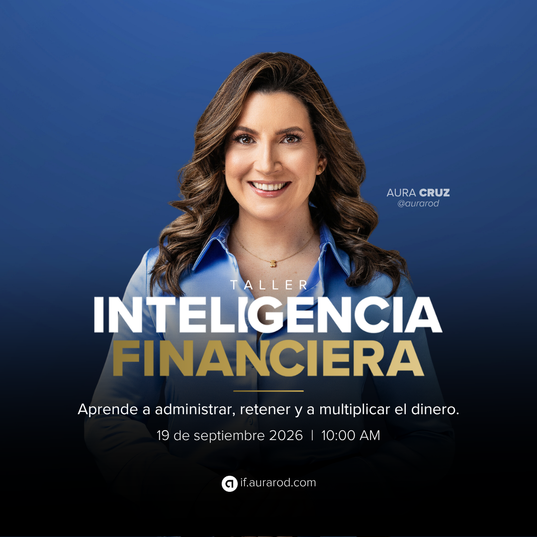 Este evento compila las enseñanzas financieras de la experta Aura Cruz para saldar deudas, elevar el score crediticio, administrar y retener el dinero y multiplicarlo.